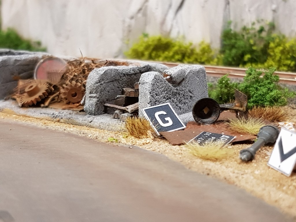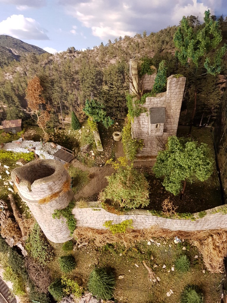 Enfin, sur la droite, on peut admirer une falaise avec son château médiéval en ruines (construction intégrale en carton plume).